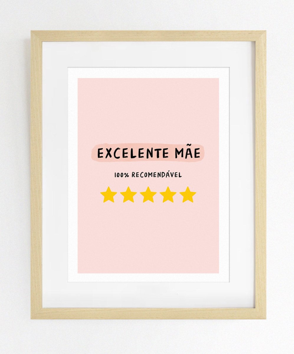 Surprise your mom with the 'Excellent Mother' poster from Catita Illustrations. Featuring a five-star rating and the text 'Excelente Mãe. Totalmente recomendável', this poster is living proof that your mom is the 'BEST MOTHER'. Available in both physical and digital versions, in 3 sizes. The perfect gift to laugh and celebrate the wonder mom in your life!