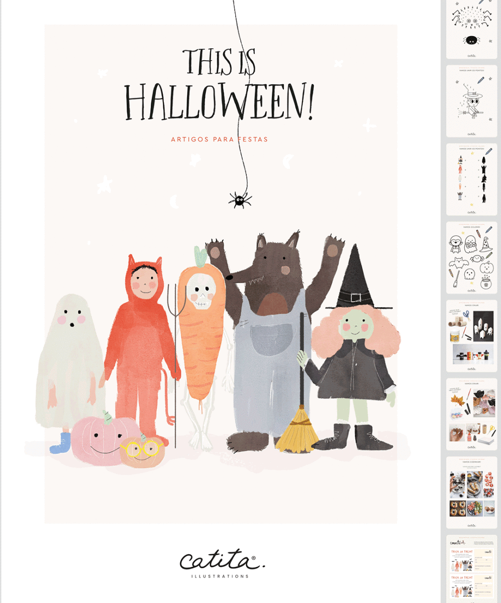 Prepare-se para um Halloween épico com o "Pack Festa 'This is Halloween'"! Este conjunto digital, repleto de criatividade, oferece toppers, grinaldas, jogos e convites com temas de fantasmas, morcegos e esqueletos prontos para imprimir, pintar e personalizar. Inspiração para cozinhar com os mais pequeninos e ideias para criar personagens terroríficos apenas com materiais simples como folhas, pinhas ou rolos de papel higiénico. How cool?